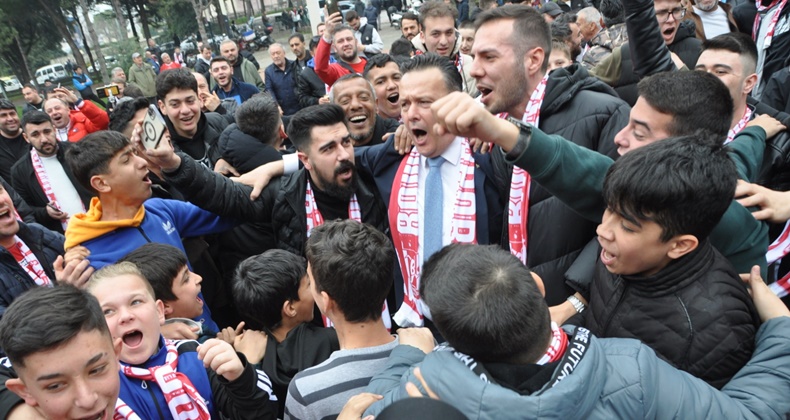 75. Yıl Parkı’nda Balıkesirspor-Orduspor 1967 maçı öncesi kırmızı-beyazlı taraftarla buluşan Cumhur İttifakı Altıeylül Belediye Başkan adayı Mesut Eray ve MHP Altıeylül Belediye Meclis Üyesi adayı İsmet Deniz, meşalelerle karşılandı.